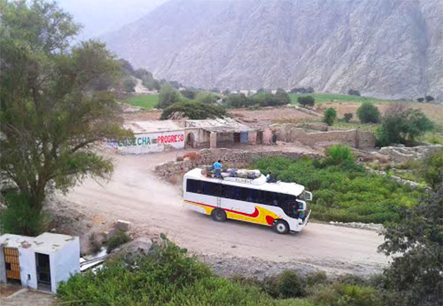 Conforme avanzamos, llegamos a Huancor. Tierra salitrosa. Ladera. Como dasafiando al tiempo están los Petroglifos de Huancor. Testimonio en piedra. Resalta el Dios de los Chincha: El Jaguar. Un par de kilómetros más, y encontramos, al borde de la carretera y pegada al cerro, un poco escondida para los distraídos pasajeros, en el fundo Luchumarca, una inmensa cascada que se desprende de una acequia.