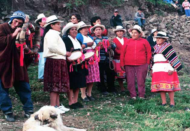 Al mismo tiempo se juega con harina, agua y serpentina, se masca coca, se fuma y se bebe en un ambiente de comunidad que ayuda a estrechar los lazos entre familias.