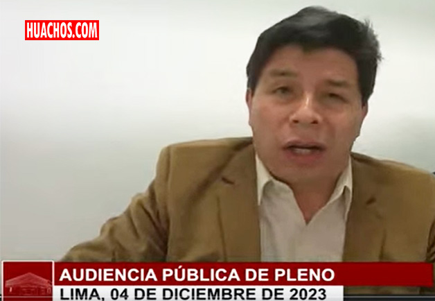 "Me han apresado y mis derechos constitucionales a la libertad y al debido proceso han sido violados. Esto fue ordenado por la fiscal de la Nación, quien hoy se revela como líder de una organización criminal, en coordinación con altos mandos de la Policía Nacional del Perú (PNP) y algunos congresistas. Todo esto con el fin de derrocar mi gobierno debido a que no pertenezco a esta élite y no están de acuerdo con mis orígenes", expresó Castillo al inicio de la audiencia.