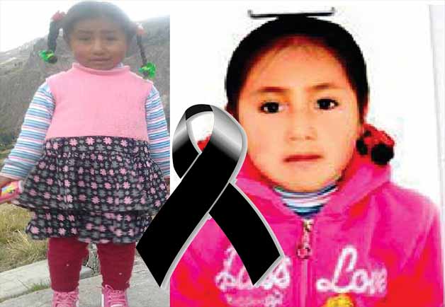 En el Facebook de Mujeres Huancavelicanas informan que luego de tres días de intensa búsqueda por parte de sus familiares la pequeña Judith Huamaní Castro (04) fue hallada sin vida a espaldas del Estadio Municipal de esta ciudad, a tres cuadras de la comisaria de este sector.