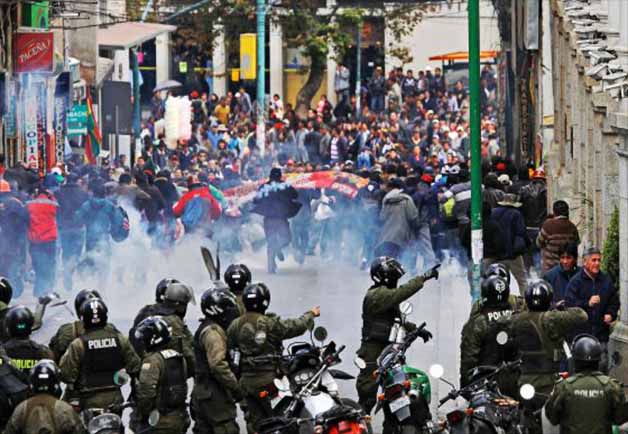 Un estudio del Observatorio de Análisis de Conflictos Sociales señala que entre 1970 y 2010 el país que hoy dirige Evo Morales registró casi una movilización diaria de promedio. En 2003, las protestas hicieron huir al presidente Sánchez de Lozada y en 2005 obligaron a renunciar al presidente Mesa. Pero no todas las marchas son tan serias: algunas rozan el surrealismo. Hace unas semanas, un grupo de jóvenes se citó en La Paz a través de Facebook para evitar que un canal televisivo cambiara el horario de Los Simpson. Y hasta hace poco una horda de muchachos con maquillaje tomaba por asalto la avenida 16 de Julio cada Halloween entorpeciendo el tráfico mientras pedía cerebros.