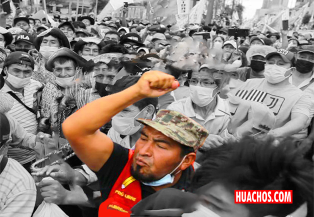 Los exaltados manifestantes radicalizaron su accionar entre el jirón Junín y la avenida Abancay, lanzando botellas a los transeúntes y golpeando a los hombres de prensa que realizaban su labor en la zona. Un hombre que llevaba puesto un chaleco rojo de Perú Libre se escabulló entre la turba y atacó a los fotógrafos y camarógrafos.
