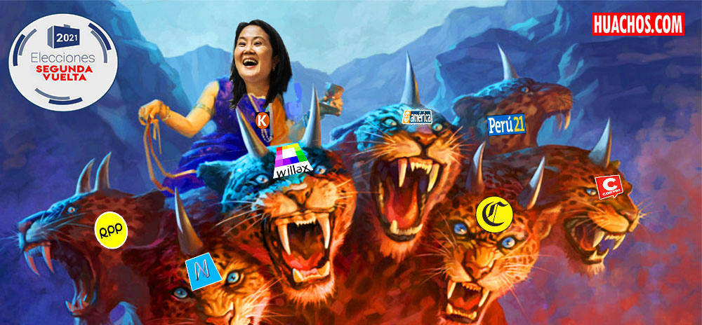 ¿Quiénes saltan y quiénes son los más entrevistados por la prensa parcializada? ¿Y, las llamadas telefónicas, acaso, no son pactadas previamente? Preciso; “profesionales especialistas” y voceros de Keiko tienen preferencia -contínua- en todos los canales y emisoras radiales. A favor de Keiko la banda que hizo su chacra del Perú sale a cada rato: Keiko, Sachi, Kenji y la japonesa Susana para hablar y en primera línea, haciéndose de hazmerreir la payasa candidata Keiko, que se viste de los atuendos del Perú profundo, contra el liderazgo de Castillo.