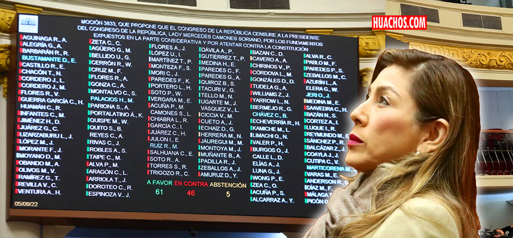 El pleno del Congreso aprobó la moción de censura contra la presidenta del Congreso, Lady Camones, a raíz de los audios difundidos por Epicentro TV donde coordina con César Acuña la promulgación de un proyecto de ley que beneficiaría al líder de Alianza para el Progreso.