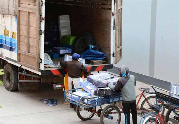 En horas de la mañana de un fin de semana, de un camión de madera se empieza a descargar pescados y mariscos que luego serían trasladados al mercado de la ciudad.