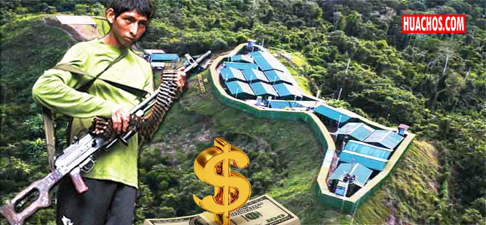 La demanda por la la cocaina aumenta de manera exponencial, esta demanda ya es planetaria. La fabrication es intensa en Colombia, Peru y Bolivia. Foto fondo: Base militar en el VRAEM. Izq.: Un narco guerrillero.