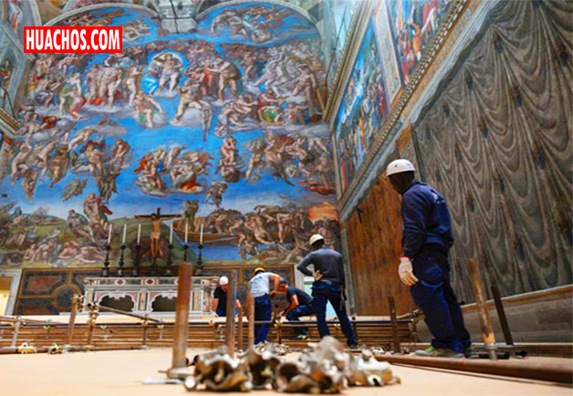 Instalación de la estufa y la chimenea en la Capilla Sixtina