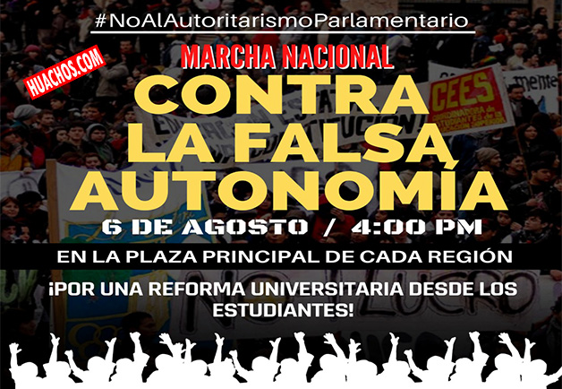 Este sábado 6 de agosto a las 4:00 pm estudiantes y representantes de gremios universitarios de todo el Perú marchan en defensa de la Reforma Universitaria.