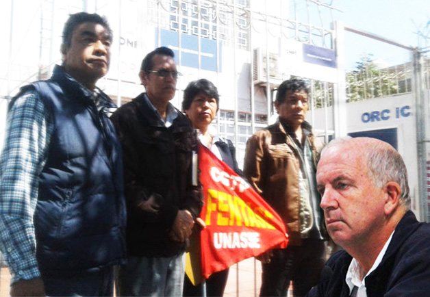 El dirigente sindical Humberto Santa María Jiménez y su comitiva frente a la oficina del OCR Ica