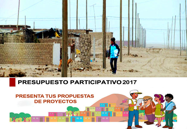 En la foto de arriba es la desolación y el abandono de Nuevo Ayacucho. La parte de abajo, es la propaganda de la Municipalidad de Grocio Prado sobre el Presupuesto Participativo.