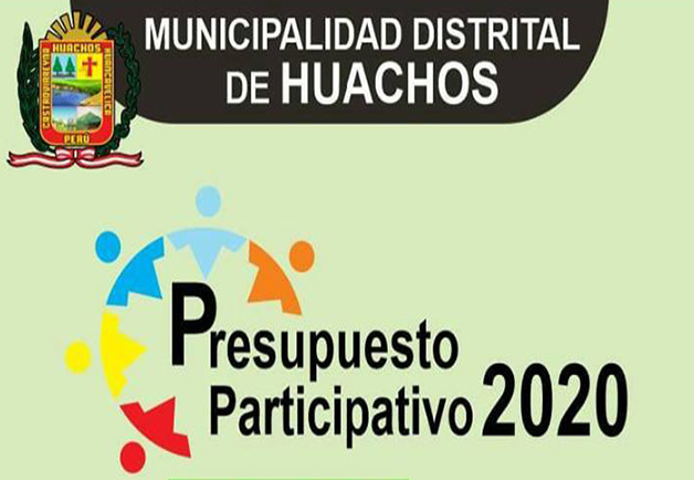 "La Municipalidad de Huachos y el consejo de coordinación local Distrital,en cumplimiento de la ley N°27972 Ley orgánica de municipalidades;Ley 28056, ley marco del presupuesto participativo; Convoca a la sociedad civil organizada y a las organizaciones publicas y privadas con sede en el Distrito,así como a las autoridades elegidas democráticamente en elecciones publicas al PROCESO DEL PRESUPUESTO PARTICIPATIVO 2020 ;el cual se da inicio conforme a la ordenanza N°002 que contiene los mecanismos orientados a dar soluciones integrales a dichos problemas".