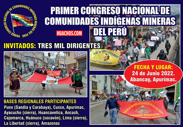El pasado viernes 24 de junio se realizó el Primer Congreso Nacional de Comunidades Indígenas Mineras del Perú, con la presencia de comunidades de Apurímac, de Puno (Sandia y Carabaya), Cusco, Ayacucho y Huancavelica.