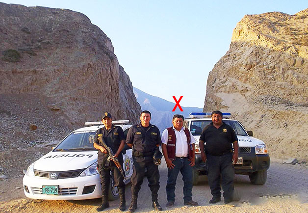 Fuente: Foto de Facebook. Nelson Diaz con miembros de la PNP en La Culebrilla.