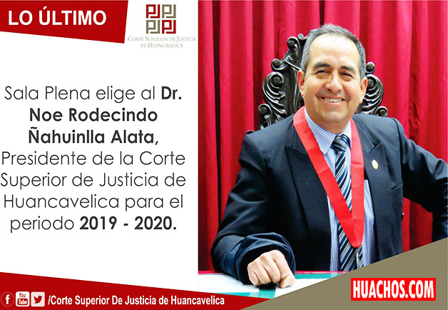 El doctor Noe Rodecindo Ñahuinlla Alata, es el nuevo presidente electo de la Corte Superior de Justicia de Huancavelica para el periodo 2019-2020, luego de haber recibido el respaldo unánime de los cinco integrantes de la Sala Plena en el acto democrático realizado en la Presidencia de Corte.
