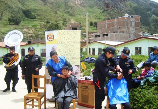 En el distrito de Ascencion (Huancavelica) - Policía realiza proyección social "Corte de cabello gratuito" en la Aldea Infantil San Francisco de Asís.