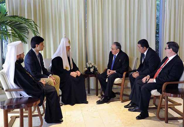 LA HABANA - El Presidente de los Consejos de Estado y de Ministros, General de Ejército Raúl Castro Ruz, recibió en el aeropuerto internacional José Martí al Patriarca de Moscú y de Toda Rusia, Su Santidad Kirill, en la primera visita pastoral a Cuba como Primado de la Iglesia Ortodoxa Rusa.