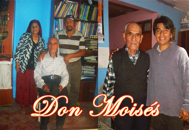 En esta toma Moisés está con su hija primitiva (Q.E.P.D) y su nieto Percy Vilcapuma, en un reconfortante viaje a Cañete Der. Con su nieto Richard Suarez, a sus 94 años.