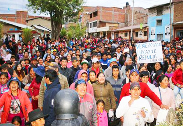 Numerosos ciudadanos venezolanos que laboraban en el distrito huancavelicano de Lircay huyeron hacia las ciudades de Pisco (Ica) y Huancayo (Junín), debido a probables represalias en su contra.