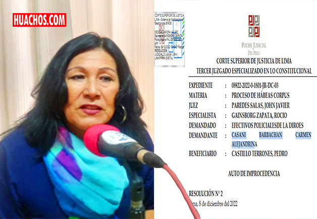 El Poder Judicial (PJ) declaró ayer improcedente la demanda de hábeas corpus presentada por la ciudadana Alejandrina Carmen Casani Barbachan, que buscaba la liberación inmediata del expresidente golpista Pedro Castillo Terrones.
