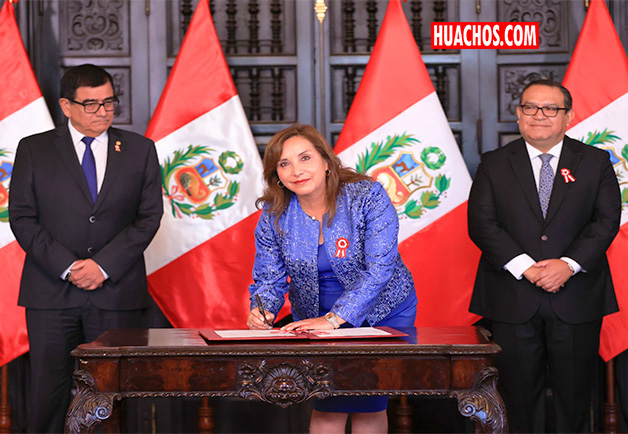 La presidenta Dina Boluarte promulgó la ley que crea la Autoridad Nacional de Infraestructura (ANIN), junto al titular del Congreso, José Williams, y al jefe del Gabinete Ministerial, Alberto Otárola, en una ceremonia realizada en Palacio de Gobierno.