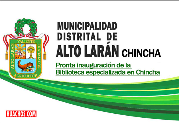 Una “Biblioteca Especializada sobre Chincha” será inaugurada en el Aniversario de Creación Política de Alto Larán, a realizarse a fines del presente mes. La biblioteca comprende material impreso: libros, separatas, folletos, dípticos, trípticos y documentos, de los 50 años de recolección; digital sobre Chincha, audio visual (videos), fotografías, que en total suman unos 10 mil especímenes.
