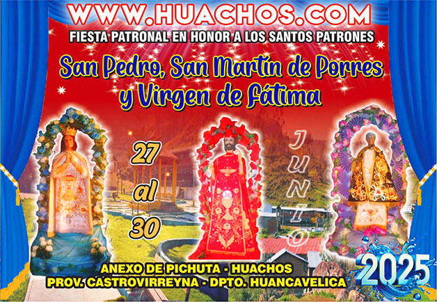 Del 27 al 30 de junio 2025 en honor a los santos patrones San Pedro, San Martín de Porres y Virgen de Fátima. Amenizado por la Banda Musical Monumental de Cañete.