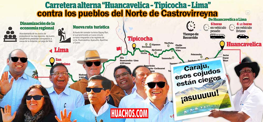 El señor Gobernador Regional, Glodoaldo Álvarez Oré al pretender realizar la ejecución de la carretera Huancavelica-Tipicocha-Yauyos-Cañete (ver propaganda del Gore Huancavelica), a mi parecer no está muy bien asesorado por sus funcionarios de turno que no conocen el ámbito de nuestro departamento sobre todo los ocho distritos del norte de Castrovirreyna.