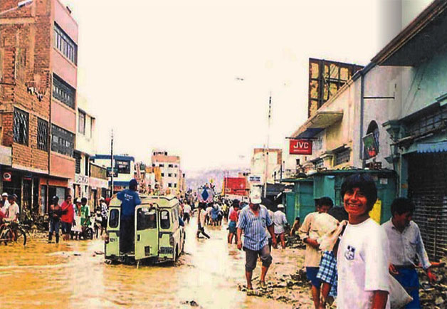 el jueves 29 de enero de 1998, siendo las 4pm de la tarde, se inició la lluvia torrencial en la ciudad de Ica, se corto el fluido eléctrico, las calles quedaron anegadas, aproximadamente a las 8 de la noche el cauce acrecentado del Rio Ica, comienza a desbordarse por el sector de Puente Socorro y Puente Grau. Pocos minutos después se rompe el muro de contención de la calle Pimentel, saliéndose el agua sin control hacia el centro de la ciudad.