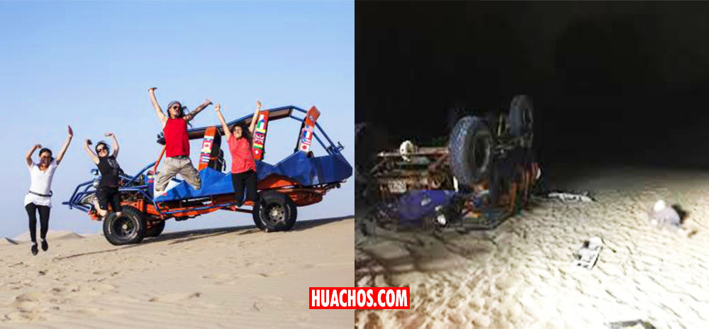 HUACACHINA (Ica) | El dia viernes por la tarde otro vehiculo tubular se volcó en las dunas del balneario de Huacachina, con nueves personas a bordo entre ellos 2 menores de edad, que resultaron con heridas de consideración, el vehiculo pertenece a la conocida Anai.