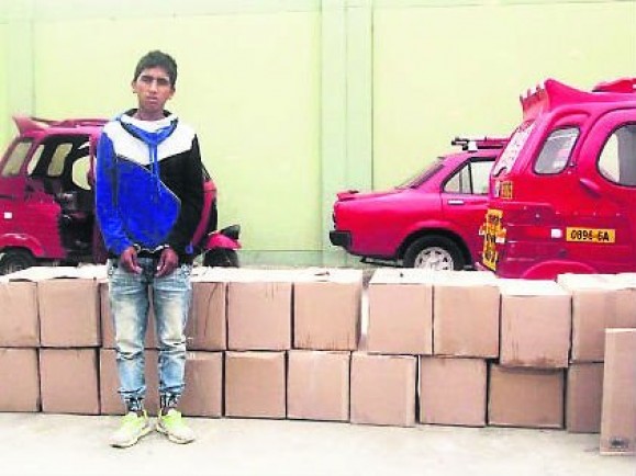 El hallazgo se produjo luego de intervenir la camioneta de placa C4F – 844, conducida por Yover Casas Auqui (21), quien trasladaba un total de 24 cajas de cartón que llevaban un bidón plástico azul con thinner sin la documentación autorizada para su traslado.