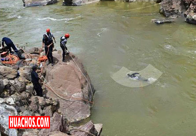 HUANCAVELICA - Uno de los cuerpos fue visto ayer flotando en las aguas en horas de la noche pero por la oscuridad no pudieron sacarlo. Hoy luego de medio día, los buzos que se encuentran en la zona de de Machacuay en el distrito de Mariscal Cáceres en Huancavelica lograron dar con dos cuerpos de los desaparecidos en el accidente del bus Turismo central que cayó a las aguas del río Mantaro el último domingo.