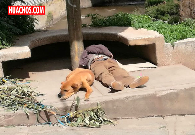 Varios curiosos se habían aglomerado y observaban el cadáver de un poblador que fue hallado sin signos vitales y que estaba acompañado de un perro, animal que no se separaba de su lado y parecía sentir dolor por el deceso del ciudadano.