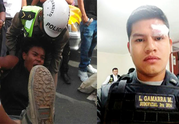 Sin embargo, en un descuido uno de los colombianos le propinó un cabezazo al suboficial Luis Erlin Gamarra Mendoza, causándole una herida cortante a la altura de la ceja izquierda.