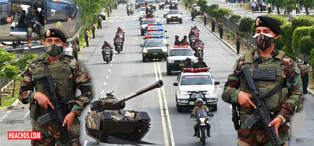Nada de eso revestía para el despliegue de mil policías, armados hasta los dientes, ubicados de centímetro a centímetro, parapetados en los techos, serenos, policías municipales, posiblemente con apoyo de la FBI o servicios secreto ruso, o quizás con policías armadas de la China, amén de otros refuerzos. Ya están las vacunas en el Perú, pese al más grande escandalete, promovido por el gobierno golpista y narrado, en serie, por la prensa nacional, lo que revele que los periodistas gozan de la subvención millonaria del gobierno, como se denuncia en las redes. Solamente faltaba la protección de Dios, chamanes y brujos, lo que no se difundió.