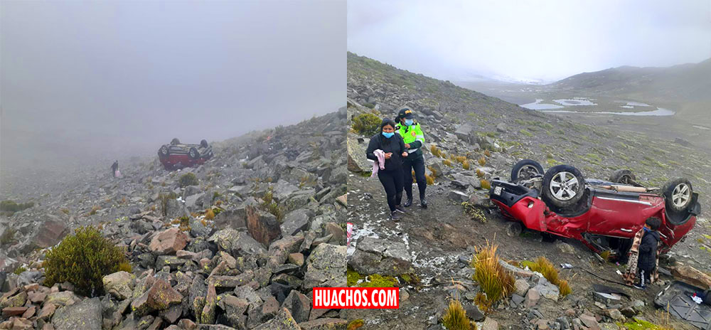 Una familia fue rescatada gracias al pedido de auxilio de un menor de 12 años en el sector de Abra del km 135 de la carretera Huancavelica – Chincha; hasta el lugar llegaron efectivos policiales de la Comisaría de Chupamarca que encontraron al menor en medio de la lluvia y la nieve luego de haber sufrido un accidente de tránsito.