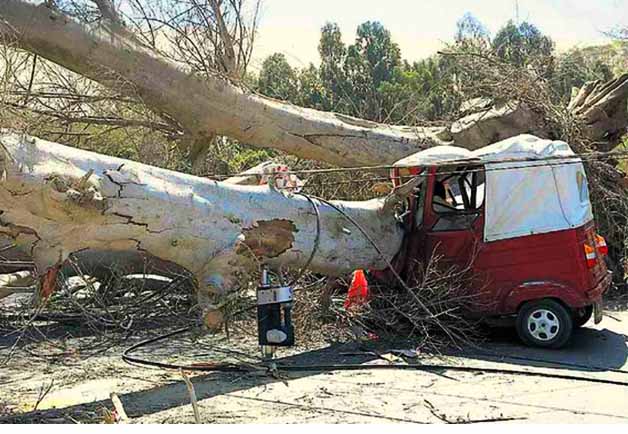 ICA – El día de ayer, un viejo árbol de ficus de gran tamaño se vino abajo y aplastó un mototaxi, el lamentable hecho ocurrió cerca de la 1:00pm camino a Huacahina. El chofer del vehículo, William Pérez Hernández de 32 años, llevó la peor parte muriendo en el acto, sin embargo sus tres pasajeros resultaron con heridas de menor gravedad. Los tres fueron auxiliados en el Hospital Regional de Ica.
