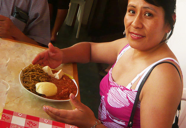 El aromático perejil picado, la sal y los clásicos sazonadores brindan el toque del sabor necesario. Cuidando que los fideos no estén tan rojos, “verdecito tiene que estar. Agregar albahaca para compensar”. Cuando el fideo crece, ya está listo para servir. “Tiene que agarrar gusto. Puede tener color, pero si no tiene gusto, no vale”.