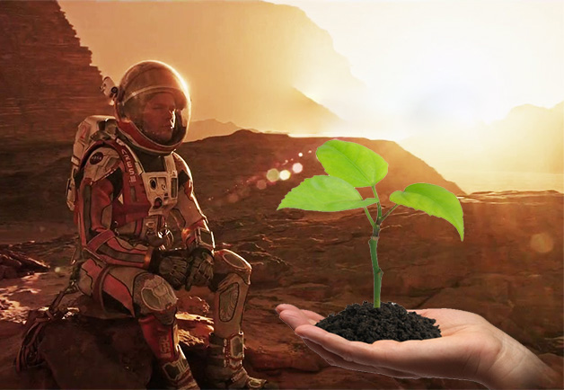 Wieger Wamelink de la Universidad Wageningen, en Holanda, plantó 14 variedades de planta en una recreación de las condiciones del suelo de Marte. En este suelo marciano, producido a partir de suelo volcánico de Hawái por la NASA, las plantas crecieron. Aunque aquella imitación del suelo marciano era imperfecta, el experimento sugería que cultivar vegetales en Marte no era imposible.