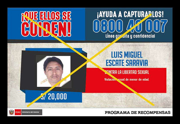 Luis Miguel Escate Saravia (28), por quien el Estado ofrecía una recompensa de 20 mil soles.