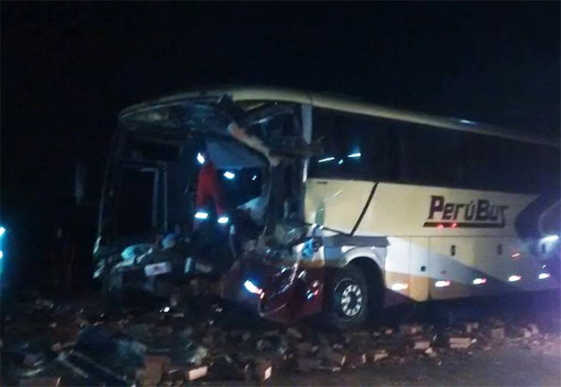 Perú Bus que cubría la ruta Ica-Nasca, fallecieron esta madrugada luego que el vehículo impactó contra la parte posterior de un camión cargado de ladrillos a la