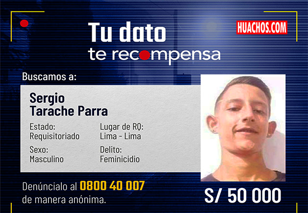 El Poder Judicial dictó impedimento de salida del país para Sergio Tarache, feminicida de la joven de 18 años atacada en la Plaza Dos de Mayo hace 12 días. Las autoridades aún continúan en su búsqueda y han pedido una recompensa de 50.000 soles a quien de información de su paradero.